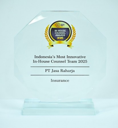 Jakarta, 11 Oktober 2025 — PT Jasa Raharja meraih penghargaan Indonesia's Most Innovative In-House Counsel Team 2025 untuk sektor asuransi, dalam ajang Indonesian In-House Counsel Summit & Awards (IHCA) 2025 yang diselenggarakan